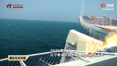2015年7月,遼寧艦首次組織實(shí)彈射擊,取得全部命中的好成績。