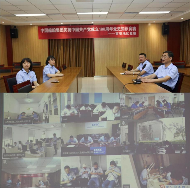 為慶祝中國(guó)共產(chǎn)黨成立100周年,扎實(shí)推動(dòng)黨史學(xué)習(xí)教育,由中國(guó)船舶集團(tuán)主辦、集團(tuán)公司黨群工作部指導(dǎo)、中國(guó)船舶集團(tuán)黨校承辦的黨史知識(shí)競(jìng)賽自4月中旬起在集團(tuán)公司內(nèi)全面開(kāi)展。各地區(qū)、各成員單位按要求進(jìn)行了黨史知識(shí)競(jìng)賽籌備以及地區(qū)遴選和復(fù)賽工作。5月27~31日,集團(tuán)公司黨史知識(shí)競(jìng)賽8個(gè)賽區(qū)分別組織來(lái)自總部和100家成員單位的407名選手,登錄集團(tuán)公司黨校“中船e學(xué)”平臺(tái),通過(guò)集中在線測(cè)試完成了復(fù)賽。一起來(lái)看看精彩瞬間 ——