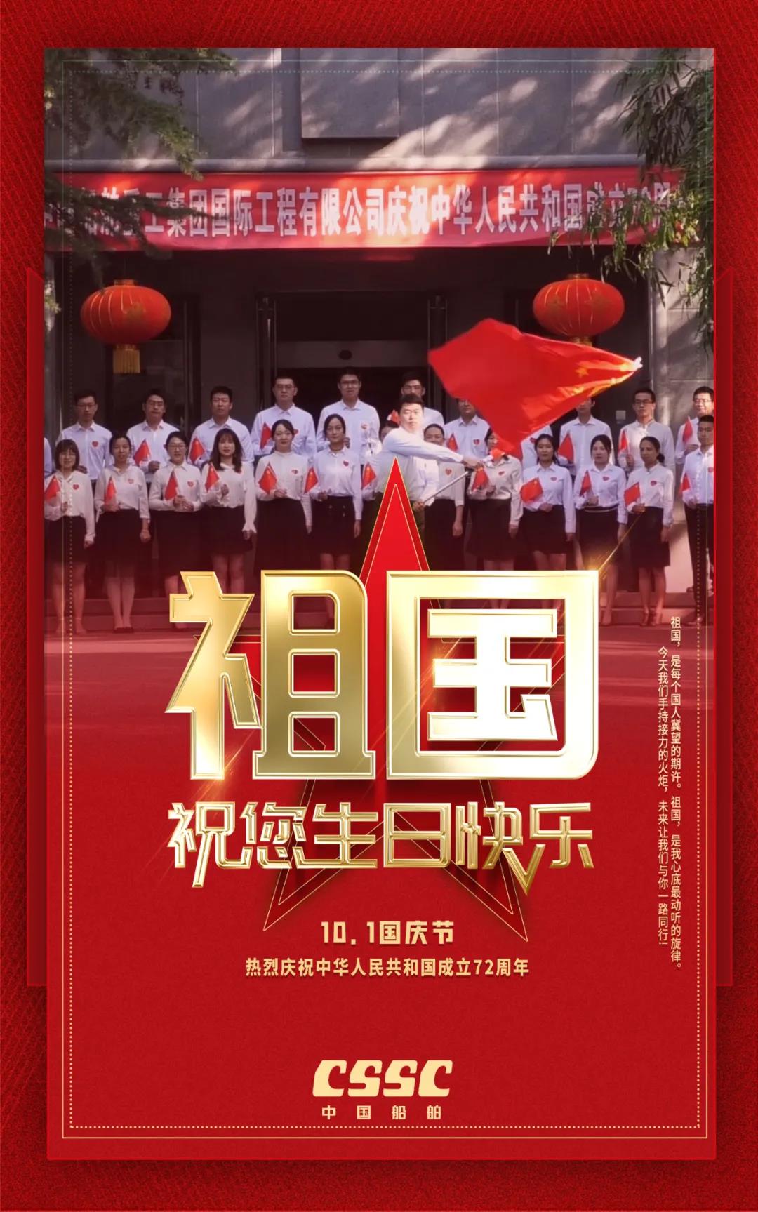 祖國,是每個(gè)國人冀望的期許!祖國,是船舶人心底最動聽的旋律!72年來,新中國經(jīng)歷了風(fēng)風(fēng)雨雨;72年過去,成就了盛世風(fēng)華,中國船舶六〇二院全體員工祝新中國生日快樂!