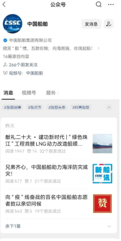第一步點擊中國船舶頭像,進入下方頁面