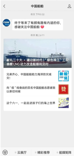 近日,中國船舶集團四大云展廳入駐集團公司微信公眾號。