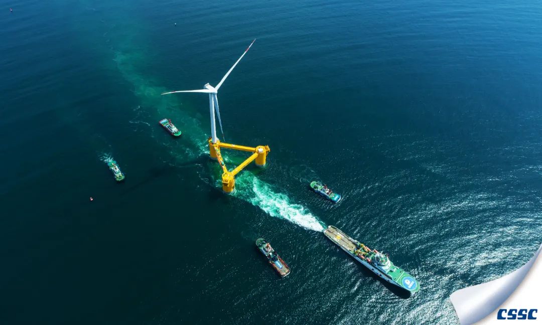 中國海裝建造的國內(nèi)首臺深遠(yuǎn)海浮式風(fēng)電裝備——“扶搖號”從廣東茂名廣港碼頭正式起航。