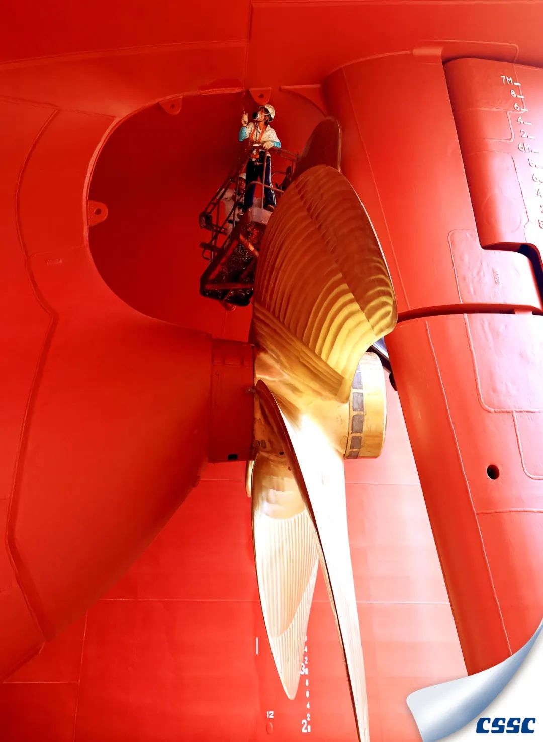 新船出塢前,造船工人對船舶外貌進(jìn)行補(bǔ)漆,以最靚麗的姿態(tài)迎接船舶出塢。