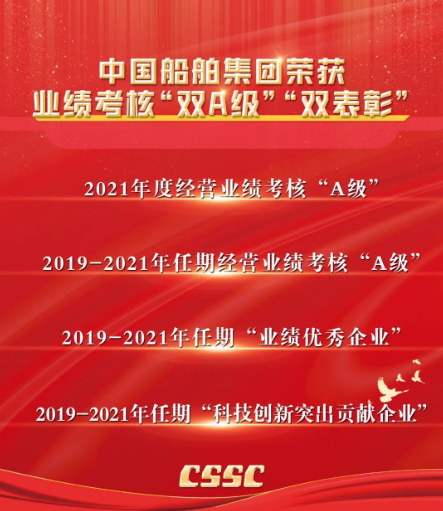 7月16日-17日,國(guó)務(wù)院國(guó)資委舉辦中央企業(yè)負(fù)責(zé)人研討班,公布了中央企業(yè)2021年度和2019-2021年任期經(jīng)營(yíng)業(yè)績(jī)考核結(jié)果,中國(guó)船舶集團(tuán)榮獲年度和任期考核“雙A級(jí)”,并被評(píng)為任期“業(yè)績(jī)優(yōu)秀企業(yè)”和“科技創(chuàng)新突出貢獻(xiàn)企業(yè)”。