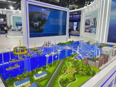 # 10萬(wàn)噸級(jí)大型深遠(yuǎn)海養(yǎng)殖工船、2000噸自升自航式風(fēng)電安裝平臺(tái)、耕海一號(hào)二期工程等模型以及“藍(lán)色海洋經(jīng)濟(jì)綜合體”沙盤(pán),生動(dòng)展示出“深海養(yǎng)殖+海上文旅+海上風(fēng)電”互聯(lián)互通的繁榮業(yè)態(tài)景象;