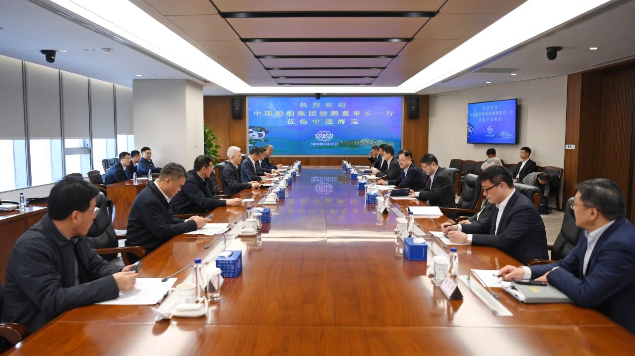 1月22日,中國船舶集團(tuán)有限公司黨組書記、董事長徐鵬一行拜會中國遠(yuǎn)洋海運(yùn)集團(tuán)有限公司黨組書記、董事長萬敏。雙方圍繞深入貫徹落實(shí)黨的二十屆三中全會精神和中央經(jīng)濟(jì)工作會議精神、加快綠色和數(shù)字化轉(zhuǎn)型、攜手推動我國航運(yùn)業(yè)和造船業(yè)高質(zhì)量發(fā)展等主題,進(jìn)行了深入交流,并達(dá)成了共識。中船集團(tuán)黨組成員、副總經(jīng)理胡賢甫,中遠(yuǎn)海運(yùn)集團(tuán)黨組成員、副總經(jīng)理、總會計(jì)師孫云飛參加會談。