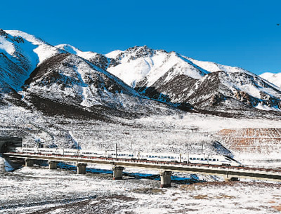 2月26日,位于甘肅、青海兩省交界處的祁連山白雪皚皚,一列動(dòng)車(chē)駛出被譽(yù)為世界海拔第一高鐵隧道的祁連山隧道。 成 林?jǐn)z(人民視覺(jué))