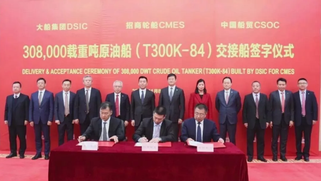 ????11月8日,大船集團為招商輪船建造的30萬噸超大型油船(VLCC)“凱?!碧柡炞纸还ぁ?