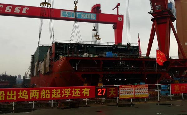 廣船國(guó)際建造的豪華客滾船完成3個(gè)艉跳板的裝焊任務(wù)