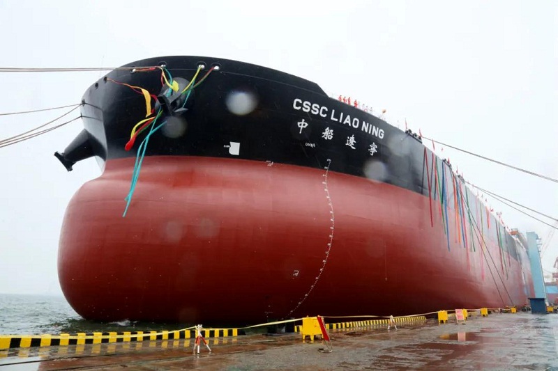 ????今天,中國船舶集團(tuán)旗下大船集團(tuán)為中船貿(mào)易所屬租賃公司建造的30.8萬噸超大型原油船“中船遼寧”號(hào)命名交付?!爸写|寧”號(hào)是大船集團(tuán)自主開發(fā)的新一代極具市場(chǎng)競(jìng)爭(zhēng)力的品牌船型。該船總長332.95米,型寬60米,最大載重量30.8萬噸,屬于無限航區(qū)船型,續(xù)航里程超過25000海里,在設(shè)計(jì)吃水20.5米可正常裝載200萬桶原油通過馬六甲海峽。