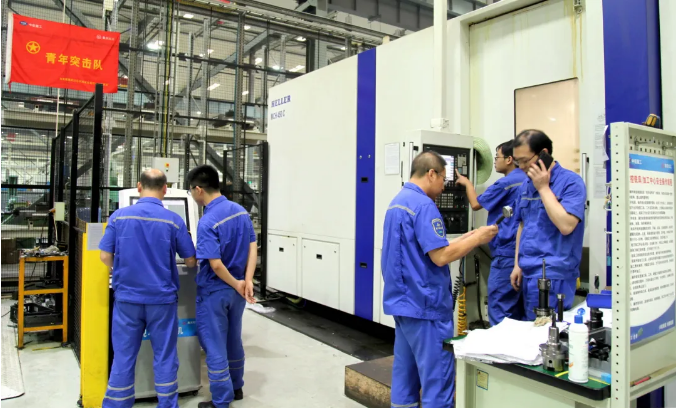 凌晨三點的中國船舶集團(tuán)旗下重慶紅江聯(lián)合廠房,室外,三伏天近40℃的高溫帶來的酷熱并沒有因入夜而降下來;室內(nèi),機(jī)床轟響燈火通明,一號車間最先進(jìn)的三臺臥式加工中心開足馬力全速運轉(zhuǎn)。