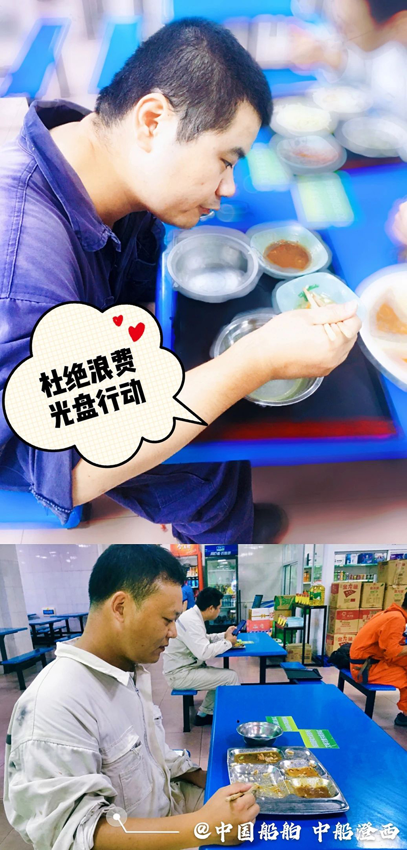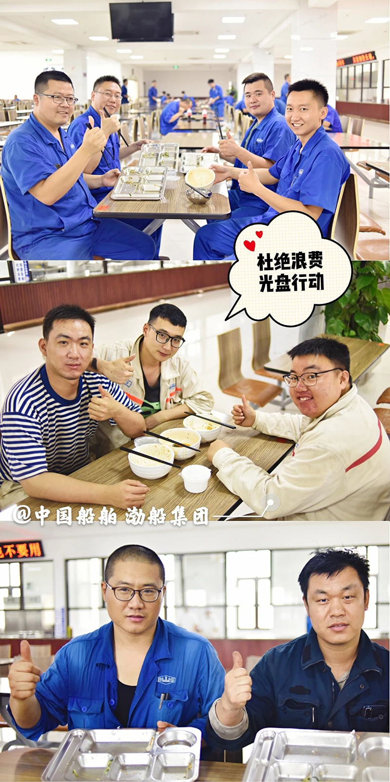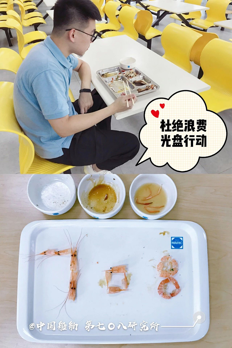 “誰知盤中餐,粒粒皆辛苦?!? 自古以來 敬天惜糧、勤儉節(jié)約就是 中華民族傳統(tǒng)美德 中國船舶集團(tuán)多家成員單位 用實(shí)際行動(dòng) 杜絕“舌尖上的浪費(fèi)”