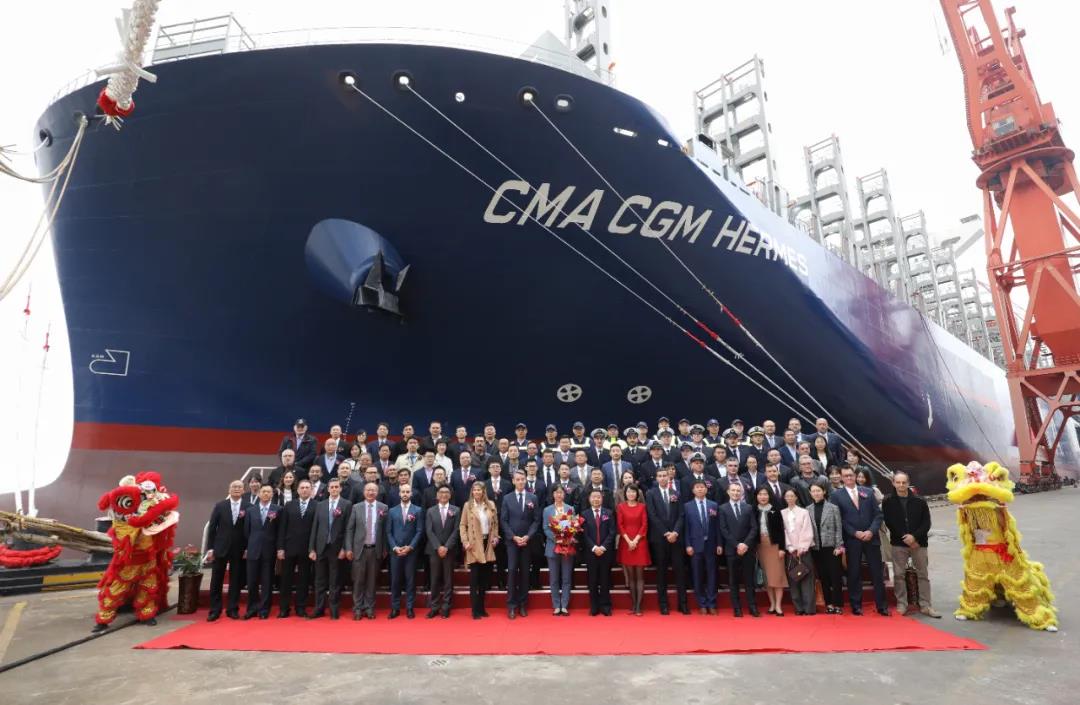 由中國船舶集團旗下江南造船攜手中船貿易為法國達飛海運集團建造的15000TEU雙燃料動力超大型集裝箱系列船首制船交付。>>點擊詳細