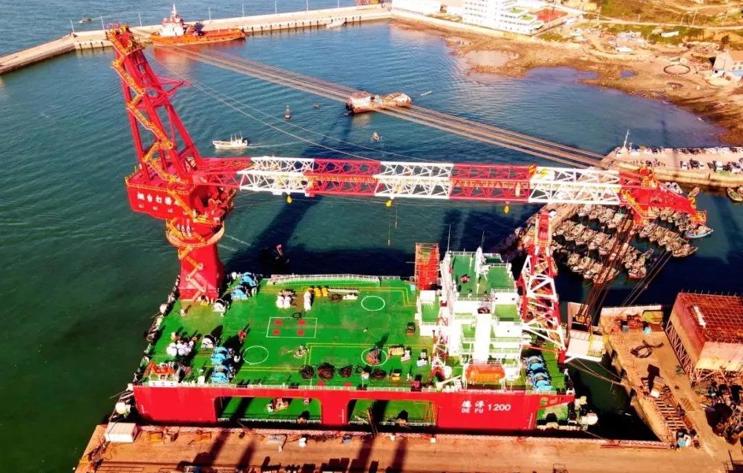海西重機(jī)為“德浮1200”提供最主要的起重設(shè)備,起重能力達(dá)1200噸,相當(dāng)可同時(shí)吊起800輛小汽車(chē)的總重量,全回轉(zhuǎn)起重能力達(dá)1000噸。起重設(shè)備將服務(wù)“德浮1200”用于近海及淺水水域的風(fēng)機(jī)安裝施工及打撈起重作業(yè)以及無(wú)限航區(qū)拖航。