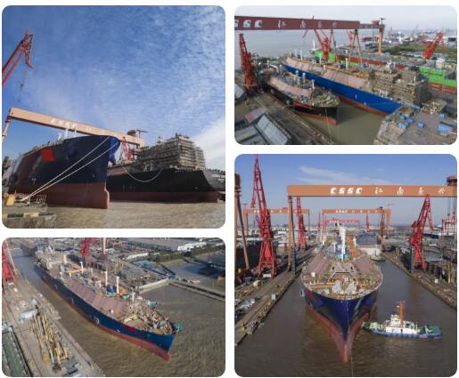11月23日,滬東中華2號(hào)船塢內(nèi)一艘174000立方米LNG船、一艘79960立方米LNG船、半艘174000立方米LNG船實(shí)現(xiàn)3船起浮、2船出塢,這也是滬東中華歷史上首次實(shí)現(xiàn)2艘LNG整船同塢同日下水。