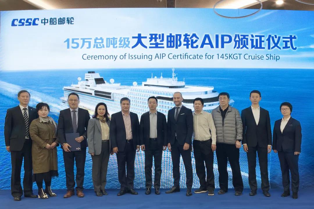 12月9日,中國船舶集團旗下中船郵輪自主研發(fā)設計的15萬總噸級大型郵輪獲得意大利船級社原則性認可(AIP)證書。這是中國首次獨立自主研發(fā)設計的完全擁有自主知識產(chǎn)權(quán)的大型郵輪,一舉打破國外在該領(lǐng)域長期技術(shù)封鎖和壟斷,開啟中國大型郵輪自主設計新時代。中國船舶集團黨組成員、副總經(jīng)理盛紀綱出席授證儀式并講話。