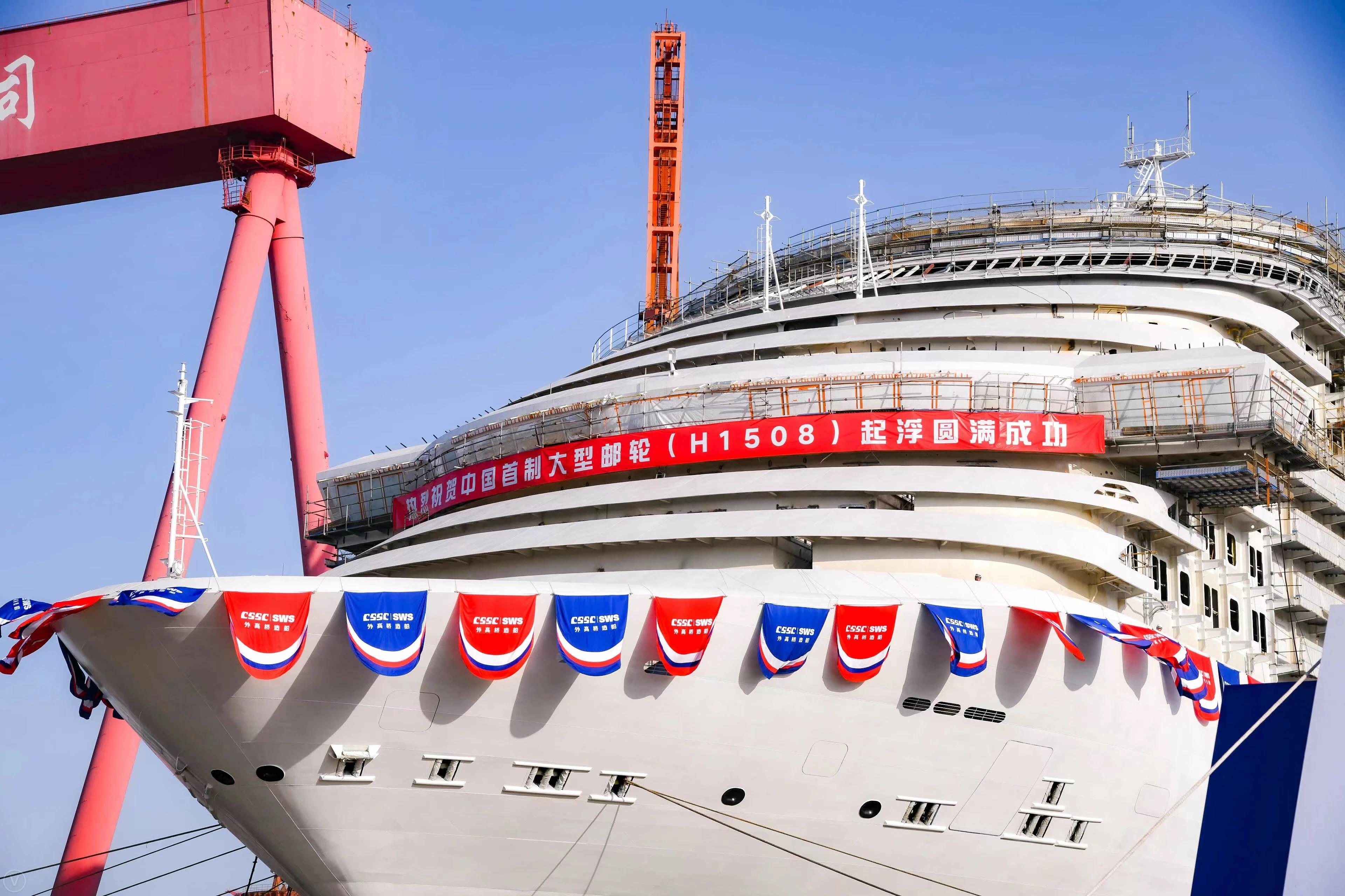 2021年12月17日,由中國船舶集團(tuán)旗下外高橋造船建造的中國首制大型郵輪順利實(shí)現(xiàn)塢內(nèi)首次起浮里程碑節(jié)點(diǎn),宣告結(jié)構(gòu)和舾裝建造的“上半場”圓滿收官!