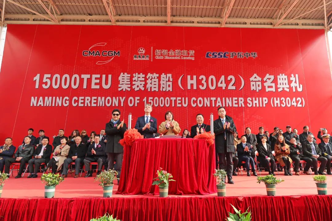 2月28日,中國(guó)船舶集團(tuán)有限公司旗下滬東中華造船(集團(tuán))有限公司聯(lián)合中國(guó)船舶工業(yè)貿(mào)易有限公司為法國(guó)達(dá)飛海運(yùn)集團(tuán)建造的15000TEU超大型集裝箱船“達(dá)飛·阿多尼斯”號(hào)在上海命名。這不僅是為達(dá)飛集團(tuán)量身定制的5艘常規(guī)動(dòng)力系列箱船中的最后一艘,實(shí)現(xiàn)了平均每月命名交付一艘的既定目標(biāo),也是繼由該公司建造的5艘全球首創(chuàng)最大、最先進(jìn)23000TEU雙燃料動(dòng)力集裝箱船之后,又一款被市場(chǎng)追捧的超大型集裝箱船項(xiàng)目完美收官,進(jìn)一步鞏固了其全球超大型箱船建造基地的地位。