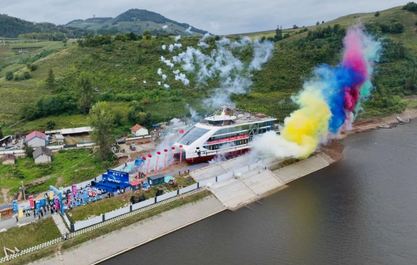 “天河一號”在東北地區(qū)內(nèi)河游覽船領域創(chuàng)下了多個“之最”:投資金額最大、噸位最大、載客人數(shù)最多、推進功率最高、服務功能最齊全。作為吉林省首艘混合動力綠色新能源船舶,同時也是首艘超過500客位的大型游覽船,“天河一號”的亮相為松花江增添了一道亮麗的風景線。