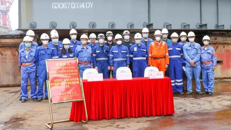 ????進(jìn)塢后,兩艘船將進(jìn)行主船體搭載包括主要設(shè)備吊裝、各系統(tǒng)完整及艙室報(bào)驗(yàn)等工作,為吊裝、拼接、合攏做準(zhǔn)備。