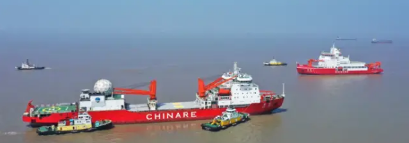 “雪龍2”號是我國首艘自主建造的極地科學考察破冰船,由中國船舶集團旗下七〇八所設計、江南造船建造,于2019年7月11日正式交付,總長122.5米,設計排水量接近14000噸,是一艘滿足無限航區(qū)要求、具備全球航行能力,能夠在極區(qū)大洋安全航行的具備國際先進水平的極地科學考察破冰船。