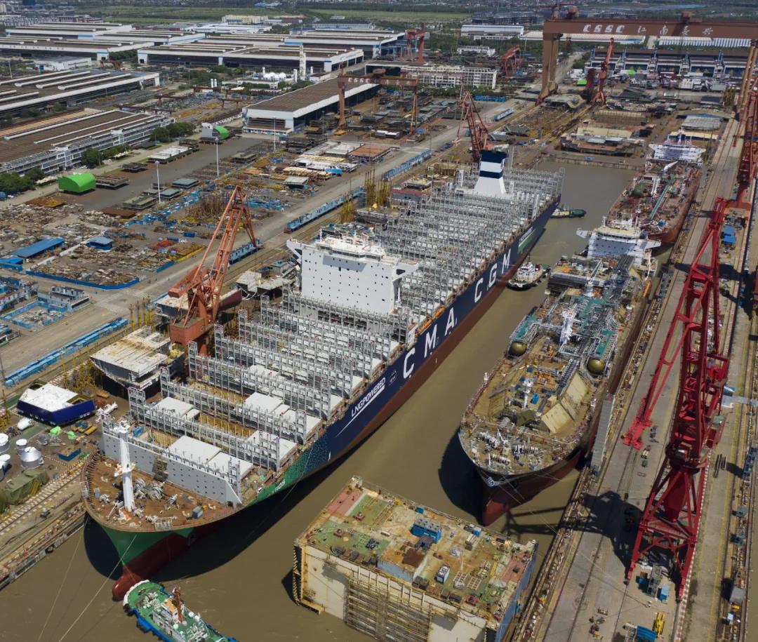 此次共有1艘15000TEU雙燃料集裝箱船、1艘86000立方米超大型雙燃料液化氣船、1艘98000立方米超大型液化乙烷運輸船等3型號共計3艘整船出塢,同時還有2型2艘半船同批次起浮。