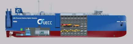 3600車(chē)汽車(chē)運(yùn)輸船是江南造船建造采用浮船塢下水的全球第一批“LNG雙燃料+電池混合動(dòng)力+智慧能源管理系統(tǒng)”的汽車(chē)運(yùn)輸船。該型船涵蓋如雙燃料+電池混合動(dòng)力及EMS能源管控系統(tǒng)等世界一流的所有滾裝船技術(shù)和系統(tǒng)。