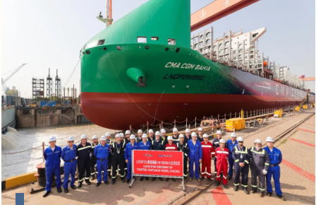 5月15日,中國船舶集團(tuán)旗下滬東中華為法國達(dá)飛集團(tuán)建造的13000TEU雙燃料集裝箱船首制船(H1839A)在順利出塢。該項(xiàng)目共6艘13000TEU雙燃料集裝箱船,目前首制船出塢,2號(hào)3號(hào)船塢內(nèi)建造,4號(hào)船燃料艙即將入塢,5號(hào)船處于分段制造階段,6號(hào)船于5月4日完成開工。