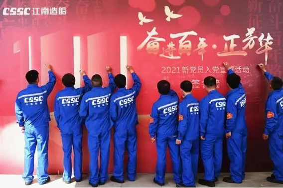 在慶祝中國共產(chǎn)黨成立100周年之際,100名來自中國船舶集團(tuán)的產(chǎn)業(yè)工人新黨員在江南造船博物館集中進(jìn)行了入黨宣誓。