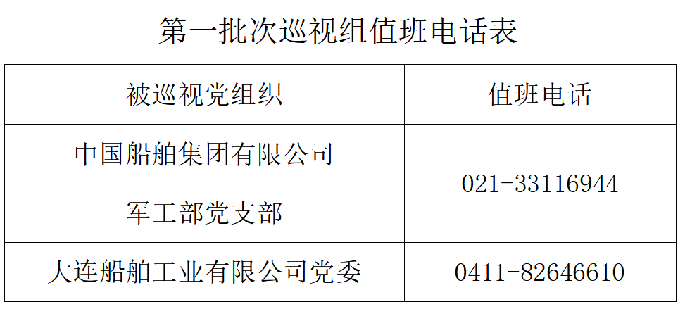 巡視期間,集團(tuán)公司黨組巡視組設(shè)置值班電話和聯(lián)系信箱,主要受理反映被巡視黨組織領(lǐng)導(dǎo)班子及其成員、下一級(jí)黨組織領(lǐng)導(dǎo)班子主要負(fù)責(zé)人和重點(diǎn)崗位領(lǐng)導(dǎo)干部問(wèn)題的來(lái)信、來(lái)電、來(lái)訪,重點(diǎn)關(guān)注違反政治紀(jì)律、組織紀(jì)律、廉潔紀(jì)律、群眾紀(jì)律、工作紀(jì)律、生活紀(jì)律以及巡視整改等方面問(wèn)題反映。第一批次巡視受理信訪截止時(shí)間為4月16日。