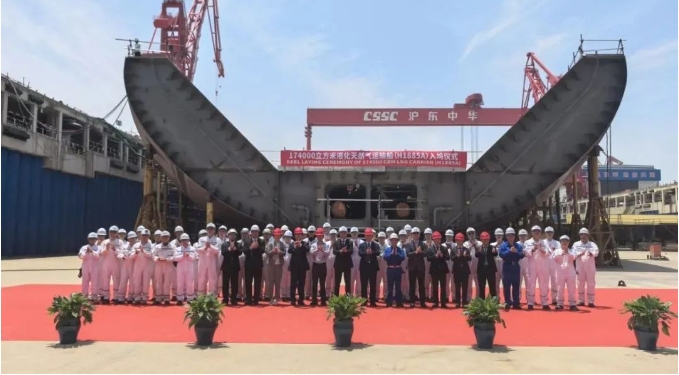 17.4萬(wàn)立方米LNG運(yùn)輸船“遠(yuǎn)海奮進(jìn)”號(hào)(Ocean Inspiration)在滬東中華新廠(chǎng)區(qū)正式命名。